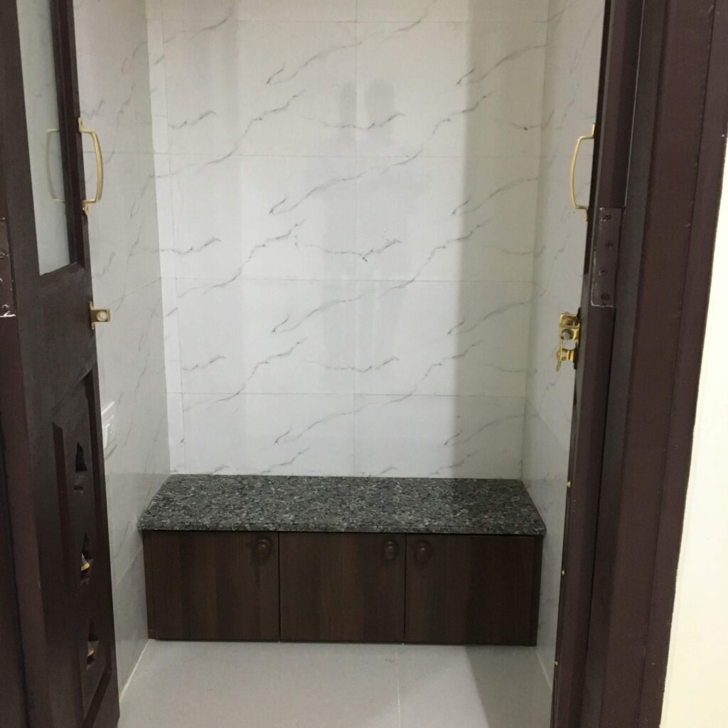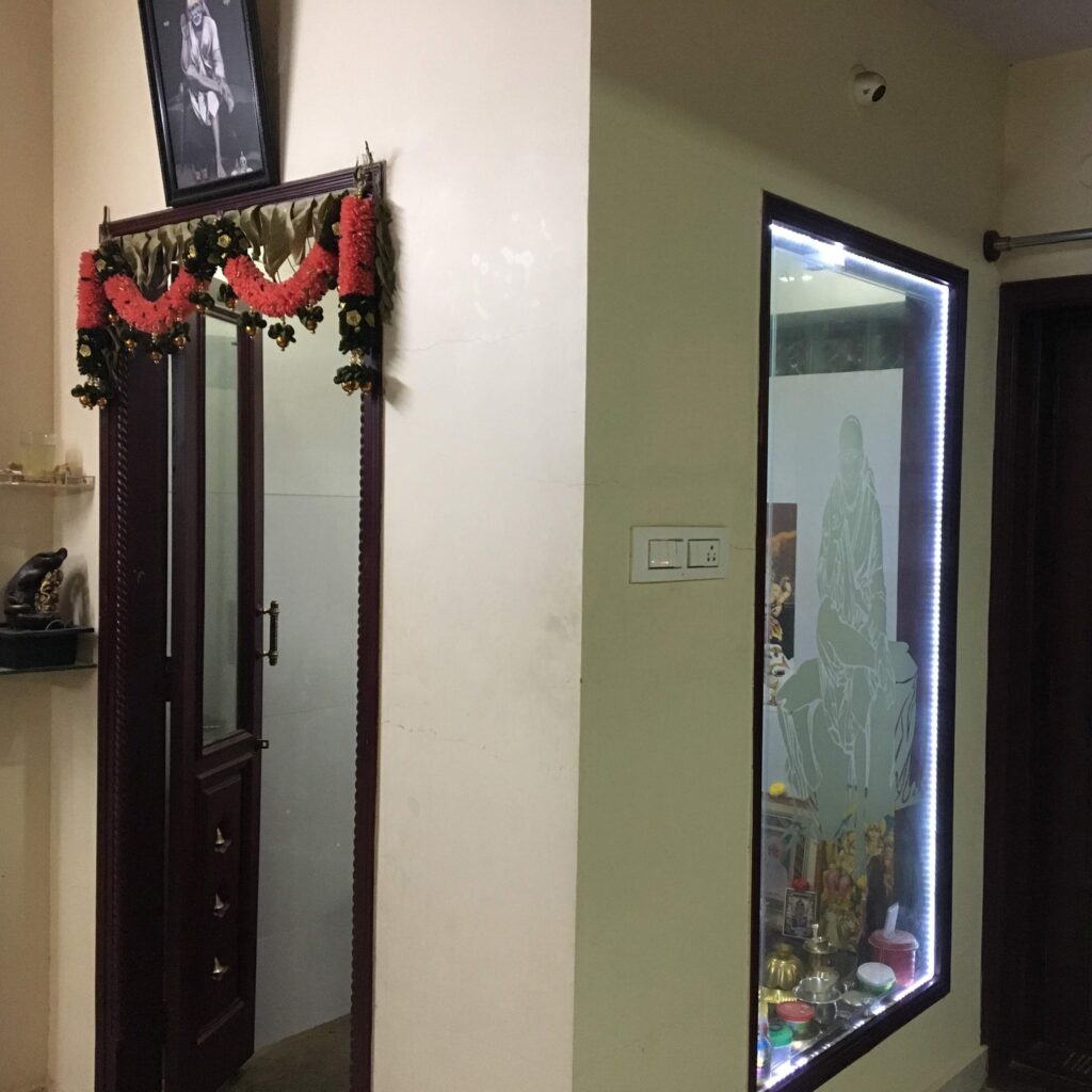 Pooja Cabinet with Teak wood shutter and Jalli panelling.