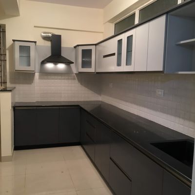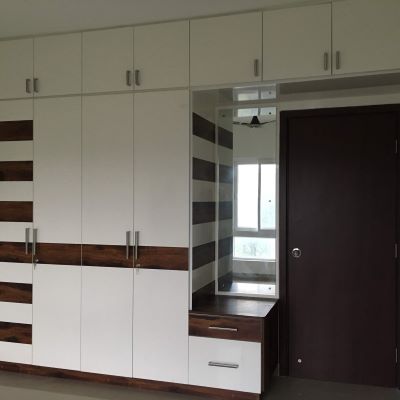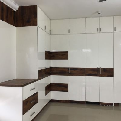 L-Shaped Full Wall Coverage Wardrobe - White Glossy Finish