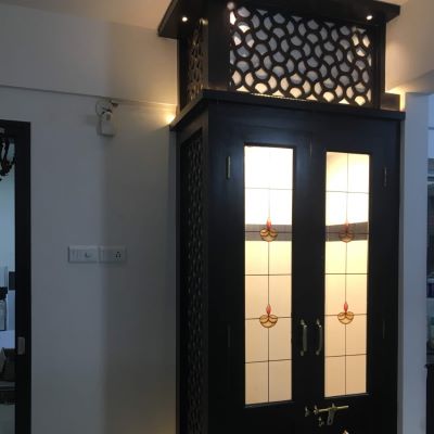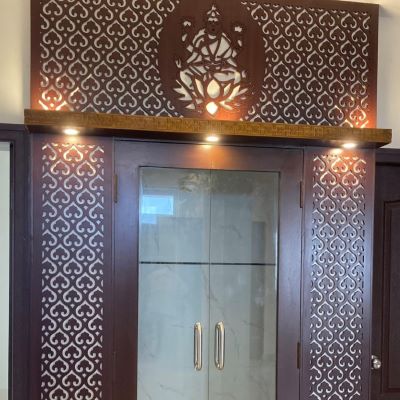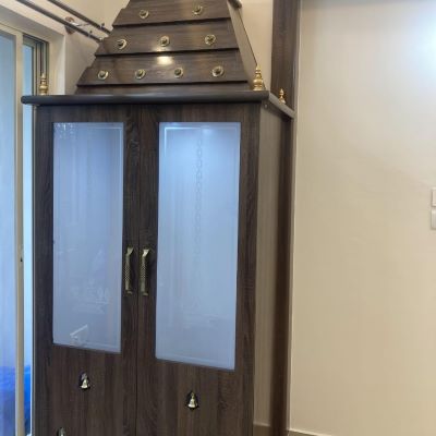 Pooja Cabinet with Masonite Glass Shutter and Jalli panelling.