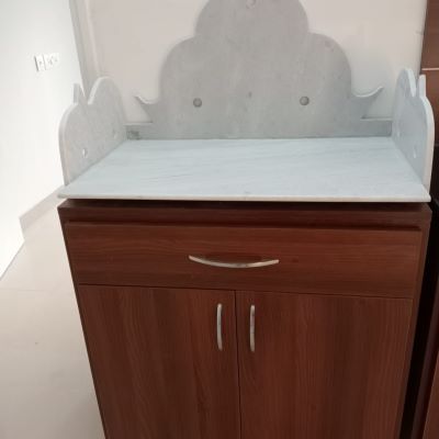 Perlam Pooja Stand with white Granite Stone Design and Drawer