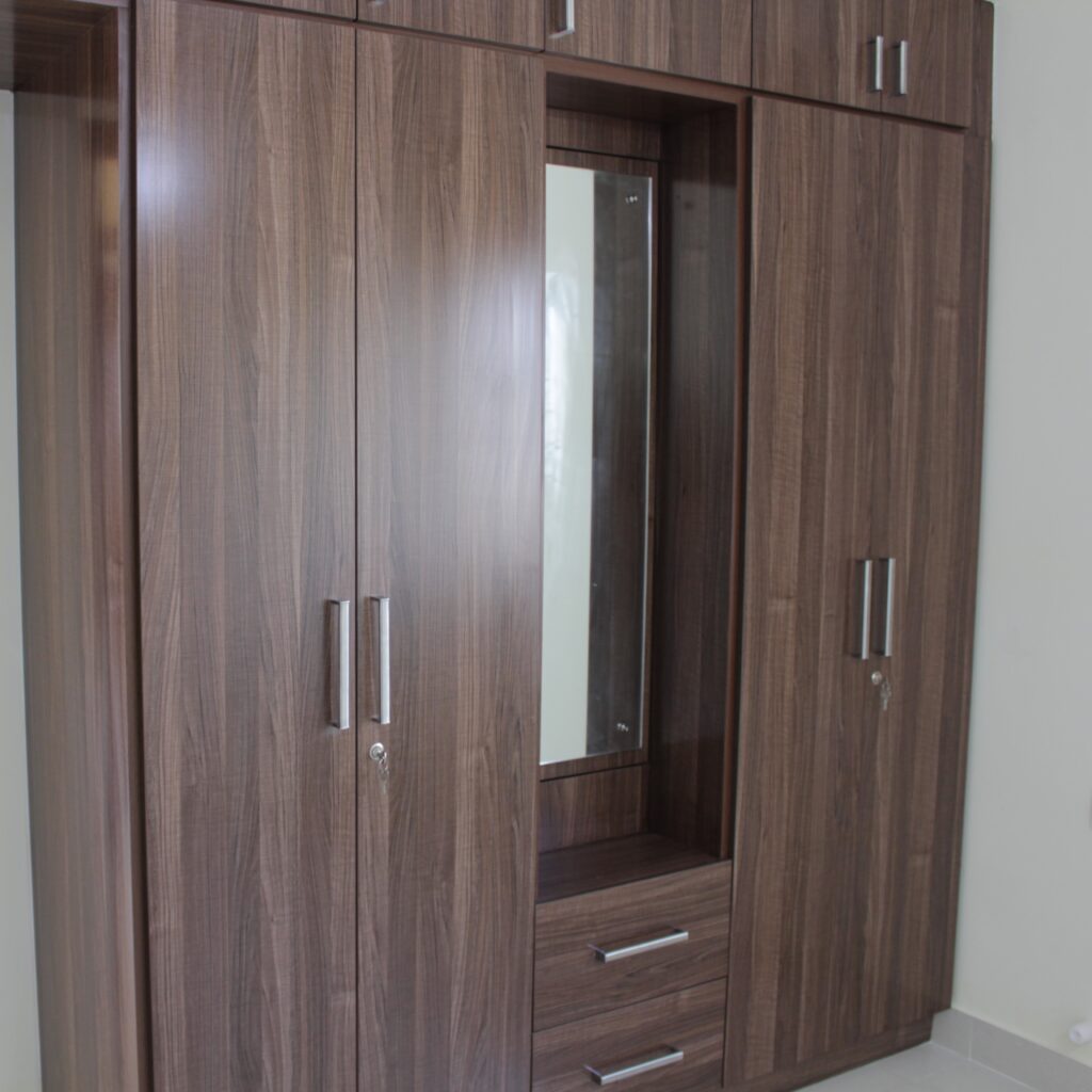 Full Wall Coverage Dark Brown Wood Finished Wardrobe, a stunning storage solution that spans from the door’s upper wall to the entire right side wall. This wardrobe seamlessly integrates with your space, providing ample storage for your belongings. The wood finish adds a touch of warmth and elegance to your room, while the dark brown color enhances its sophistication. Experience both functionality and style with this spacious and beautifully crafted wardrobe, elevating the organization and aesthetics of your living space.