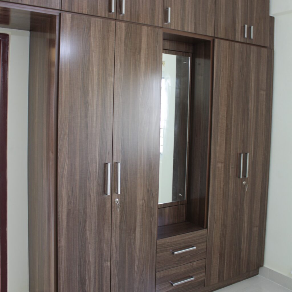 Full Wall Coverage Dark Brown Wood Finished Wardrobe